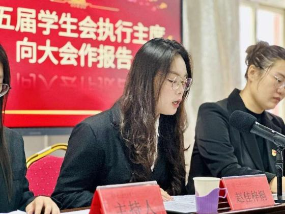 第五届学生会主席团执行主席赵佳梓桐同学代表第五届学生会向大会做工作报告。她表示,经济与管理系第五届学生会始终坚持“全心全意为同学服务”的宗旨,充分发挥“组织引领、服务广大同学、从严治会”的职能。同时,她也对第六届学生会充满信心,希望第六届学生会能秉持“崇德尚能、行知合一”的校训,怀揣“经管人生,理济天下”的梦想,为建设和谐美丽的山西工院而努力奋斗。