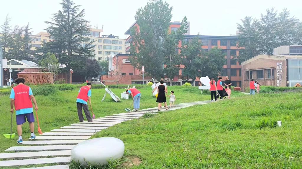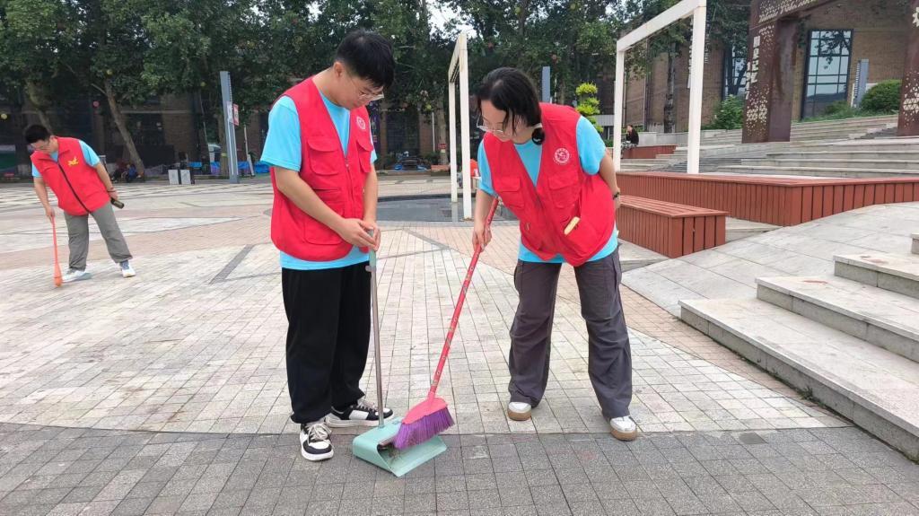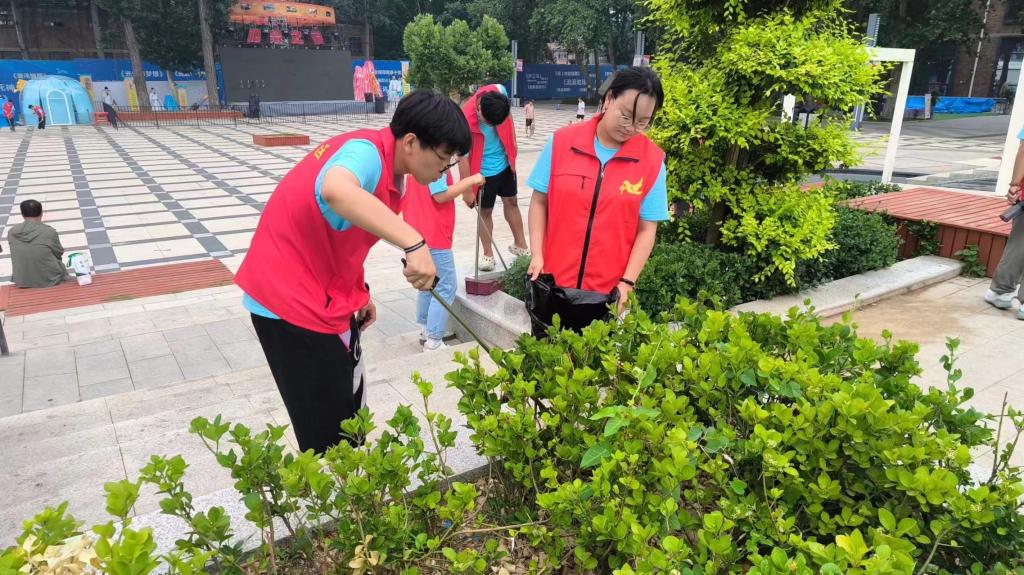第一站目的地是阳泉市1947文化园。7月7日上午,志愿者们协助园区内的工作人员清理卫生,他们手持清洁工具,分工明确,有条不紊地展开工作。有的同学沿着园区道路,仔细清理着路边的垃圾和杂物;有的同学负责清理草坪,找到那些被遗忘的塑料等进行清理。在清理过程中,同学们不放过每一个角落,用自己的双手为园区的美丽形象贡献力量。