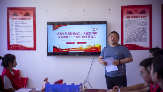 王琳老师作为驻村工作大队长,首先引用习近平总书记来到岢岚县说过的一句话:“撸起袖子加油干”,指出乡村振兴不是一句空话,是需要大家发现问题,并且积极解决问题的一个过程,扎根农村,为建设社会主义现代化强国而奋斗。随后我们在王琳老师的带领下学习了一场以“认真学习贯彻党的二十大报告精神,深刻领会‘三个务必’的丰富含义”为主题的党课,从丰富内涵、内在关系、重大意义三个方面进行讲解。时代考卷常出常新,赶考永远在路上。在新的历史方位上唯有做到“三个务必”,才能在新时代伟大实践中夺取新胜利,创造新辉煌,努力交出无愧于时代、无愧于人民的优异答卷。村支书冯艳茹书记、驻村队长王旭仁老师、院团委王刚老师及我系分团委负责人李晶老师就乡村振兴分别提出了独到的见解,学生们认真聆听,感受颇深。