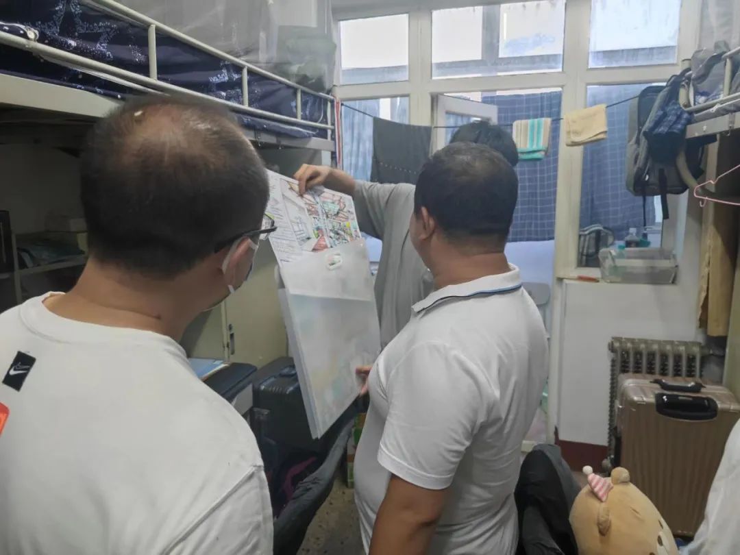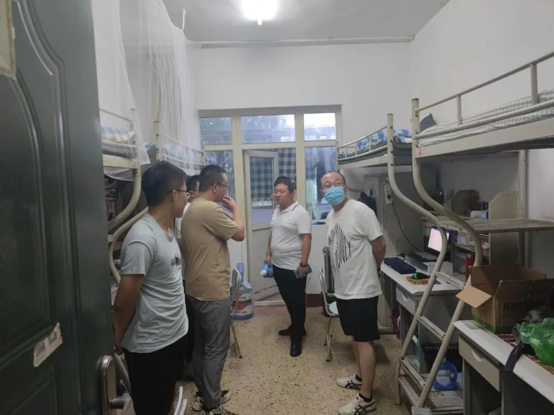 在同学们返回校园后,王琳老师带领辅导员又去查看了学生宿舍。在宿舍里,王老师对同学们提出宿舍卫生高标准要求,希望同学们在新的学期要有新的变化,宿舍卫生天天扫,保持一个整洁、舒适、文明、安全的住宿环境。
