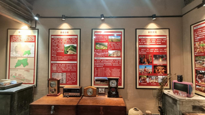 随后,我们来到了宋家沟新时代文明实践所,这里也是宋家沟村的村委会,村委会的主任为我们打开了宋家沟村村史馆的大门,进入村史馆,里面摆放了各式各样的老物件,有村民们使用的农具和风箱、药碾子等一些生活用具,其中以图画展板的形式从地理位置、历史沿革、乡村文化、基层建党等方面详细地介绍了宋家沟村的历史文化与乡土人情。宋家沟村的发展史就是为人民群众谋幸福的奋斗史。