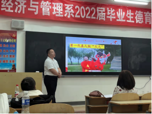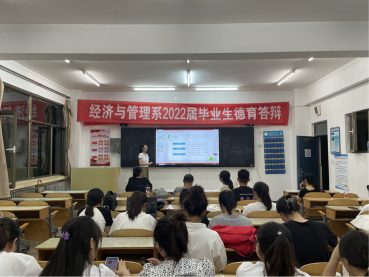 2022年6月23日晚7点,经济与管理系2022届本科毕业生德育答辩在勤学楼101教室、311教室举行。系党总支书记高文革、副书记王琳和辅导员作为答辩组成员参与其中。来自投资学专业、财务管理专业、电子商务专业各班级的67名毕业生代表现场答辩。