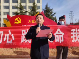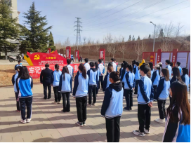 19级电子商务2班赵柯同学带领全体参会人员,面向党旗,举起右拳,庄严宣誓:“听党指挥,服从安排,以火热的激情、饱满的干劲,勇挑重担,拼搏奉献,发挥先锋模范作用,圆满完成学院评建工作,为学院的发展添砖加瓦”。