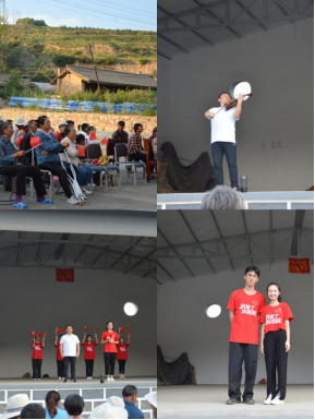 首先,村主任带领大家一同参观了村委会,随后,来到了村委会对面的舞台进行演出。沐浴着夕阳的光辉,全体成员火热的进行着节目彩排,队员们配合默契,各司其职,按预定计划进行着。6点多,村民们陆续来到舞台前,村委早已准备好座椅。伴随着动听的旋律,舞蹈《越来越好》拉开了演出的序幕。本次演出共分三个篇章,第一篇章辉煌100年,第二篇章不忘初心和第三篇章展望未来。《不忘初心》荡气回肠,《明天会更好》婉转悠扬,《撸起袖子加油干》热火朝天,《点赞中国》脍炙人口,《梁祝》优美动听、《奔跑》青春激扬......在演出的最后,所有队员一起合唱《唱支山歌给党听》和《没有共产党就没有新中国》,台下的村民们都挥舞起手中的小国旗,哼唱了起来。