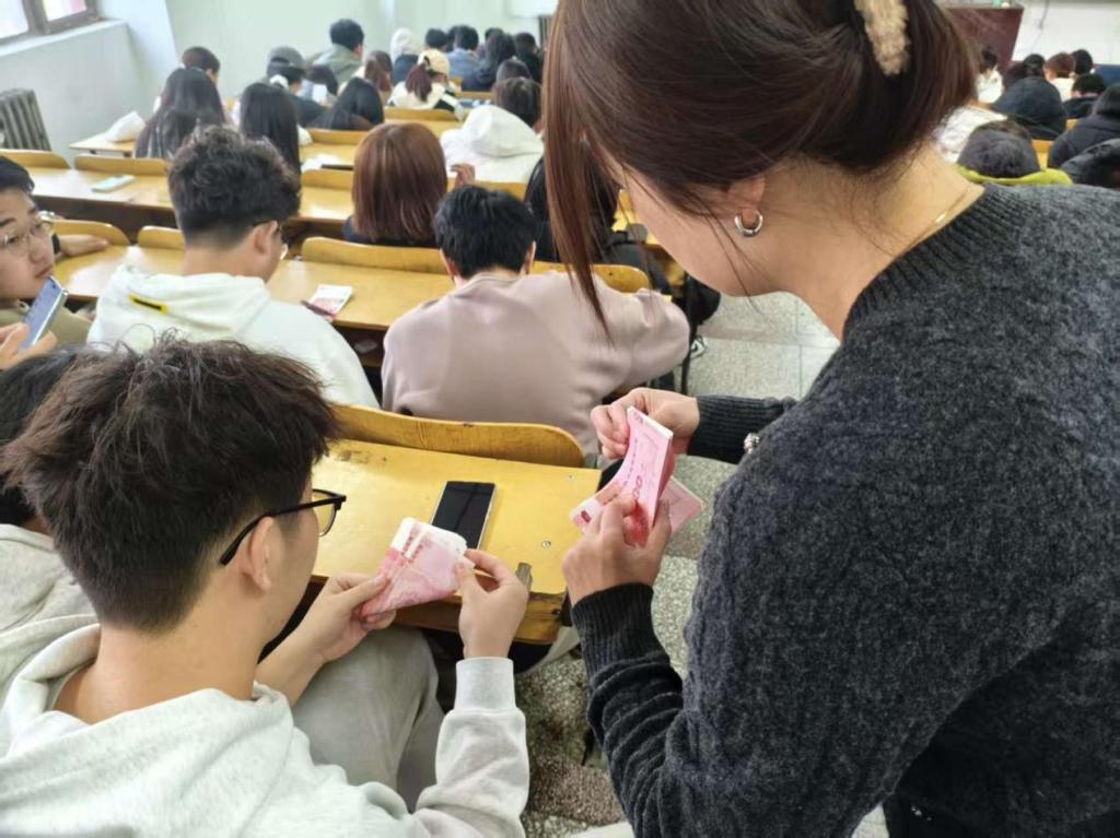 活动伊始,由经济与管理系财务管理专业教研室主任郭婷老师担任讲师,为学生们详细讲解了点钞的基本原理和技巧。培训内容以手工点钞方法为主。学生们在讲师的指导下,通过反复练习,逐渐掌握了快速准确点钞的技能。