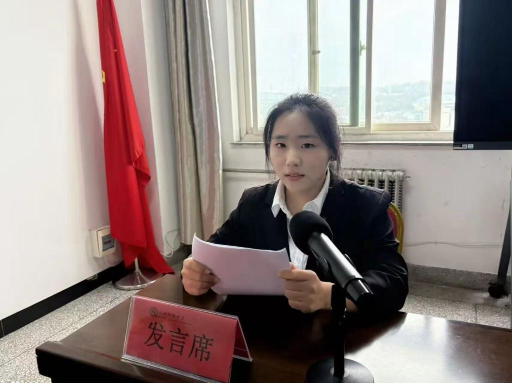 紧接着,崔彦老师发言,字里行间体现出对学生成长的关心与对学生工作的期待。她指出,学生干部是系部与同学间的重要纽带,需以“服务同学” 为根本宗旨,将个人发展融入系部建设,在实践中锤炼本领、主动担当。
