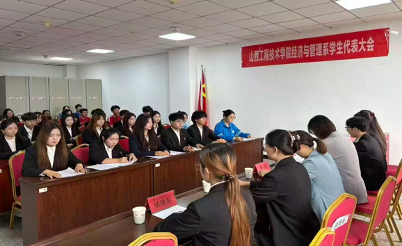 9月27日(星期六)上午,ac米兰官方网站经济与管理系第七次学生代表大会在思贤楼五层会议室召开。系党总支副书记崔彦老师、系分团委书记李晶老师出席会议,系学生会主席团执行主席李家乐及63名学生代表参会,共商系部学生工作发展事宜。