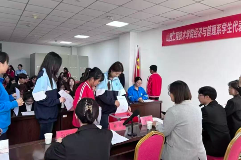 选举环节中,李晶老师详细讲述选举规则与注意事项,保障每位代表明晰流程、依法行使民主权利。大会遵循“公平、公正、公开、民主集中制” 原则,通过无记名投票、差额选举方式,产生第七届学生会成员(按姓氏笔画为序):王若彤、王晶、冯雅润、刘恺昕、刘鑫潮、陈宇婷、李永坚、李江翠、宋仕杰、宋怡霖、张然、胡玉芬、郭正清、曹浩冉、魏雅蓉。