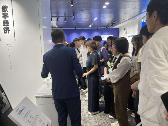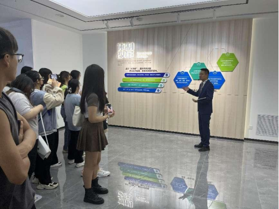 第一站,师生们来到智创城参观。工作人员热情接待,并引领大家逐一讲解高新区入驻企业情况以及未来发展趋势。学生们对这里充满了好奇,都围在讲解员的周围认真听讲。