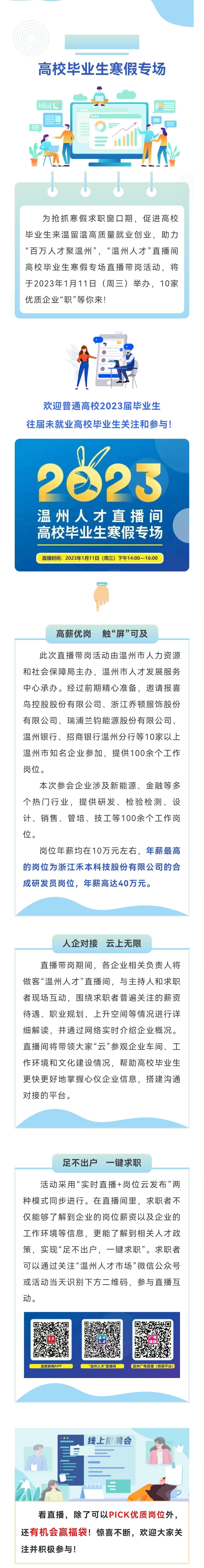 "温州人才"直播间 | 高校毕业生寒假专场,2023第一波名企优岗精彩“职”等你