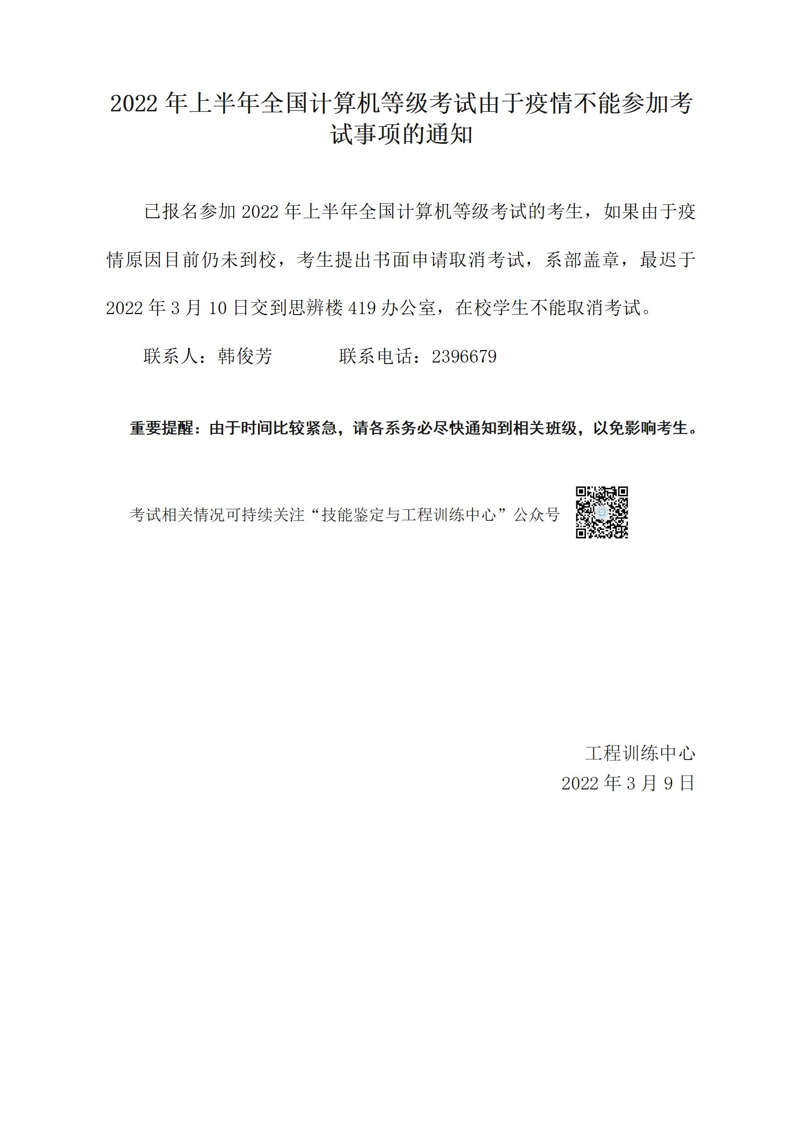 2022年上半年全国计算机等级考试由于疫情不能参加考试事项的通知