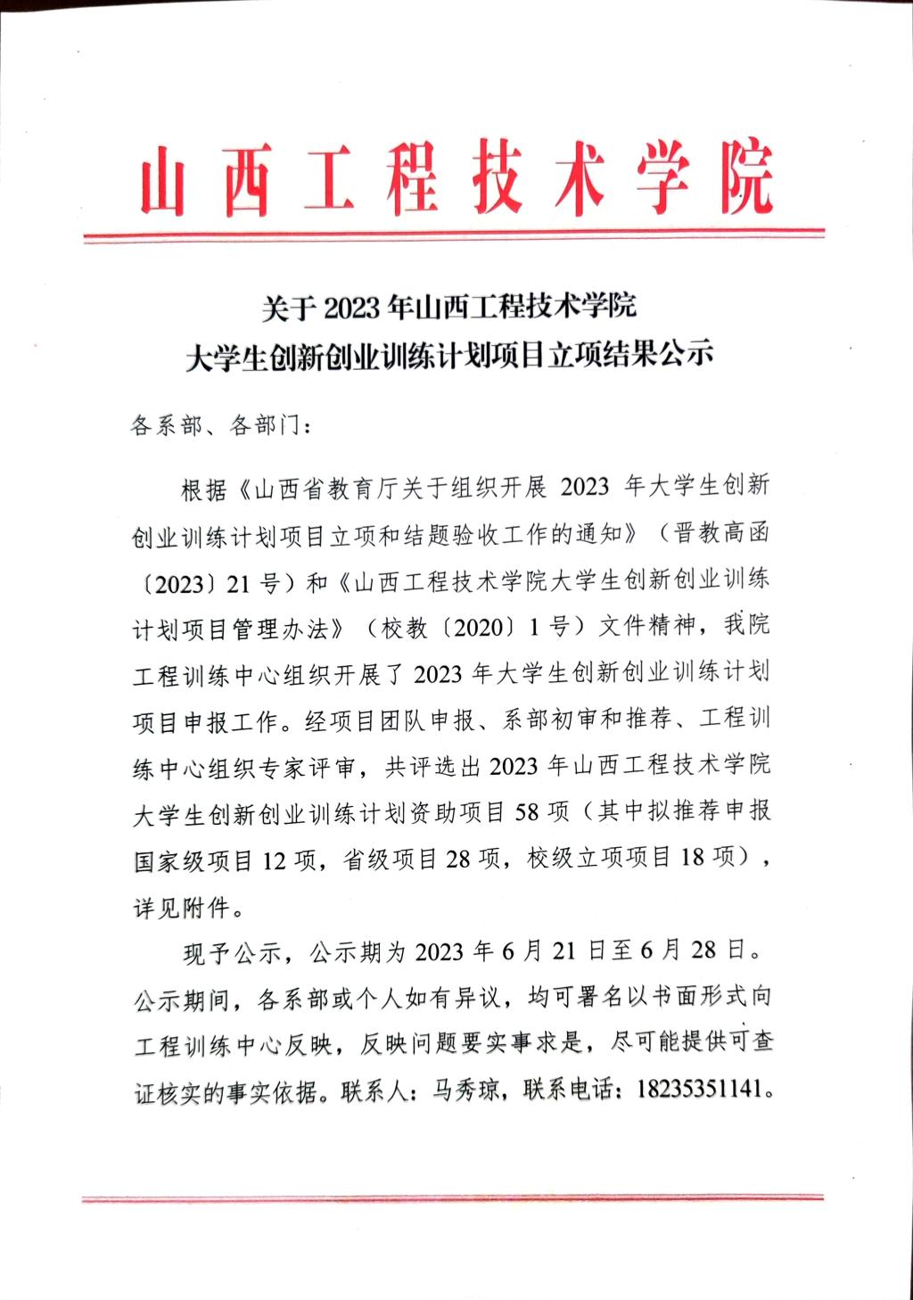 关于2023年ac米兰官方网站大学生创新创业训练计划项目立项结果公示