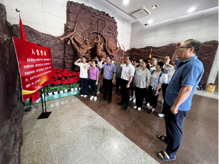 在序厅,党员们面向鲜红的党旗,举起右拳,重温入党誓词,字字千钧的誓言,既是初心使命的庄严承诺,更是接续奋斗的赤诚告白,表达了同志们对党的无限忠诚与坚定决心。