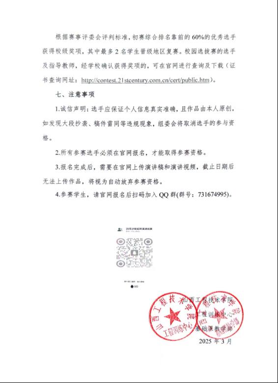 (1)上传时间:报名完成后,请按提示,在截止日期之前(2025年4月13日)上传个人演讲稿和视频。截止日期后无法上传作品,将视为自动放弃参赛资格。