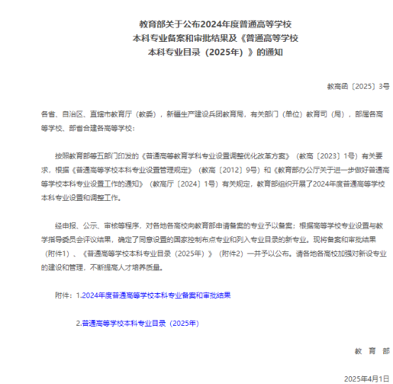 近日,教育部下发《教育部关于公布2024年度普通高等学校本科专业备案和审批结果及〈普通高等学校本科专业目录(2025年)〉的通知》(教高函〔2025〕3号),公布了2024年度高等学校本科专业备案和审批结果。学院申报的智能建造、能源化学工程两个本科专业成功获批,并将于今年9月开始招生。