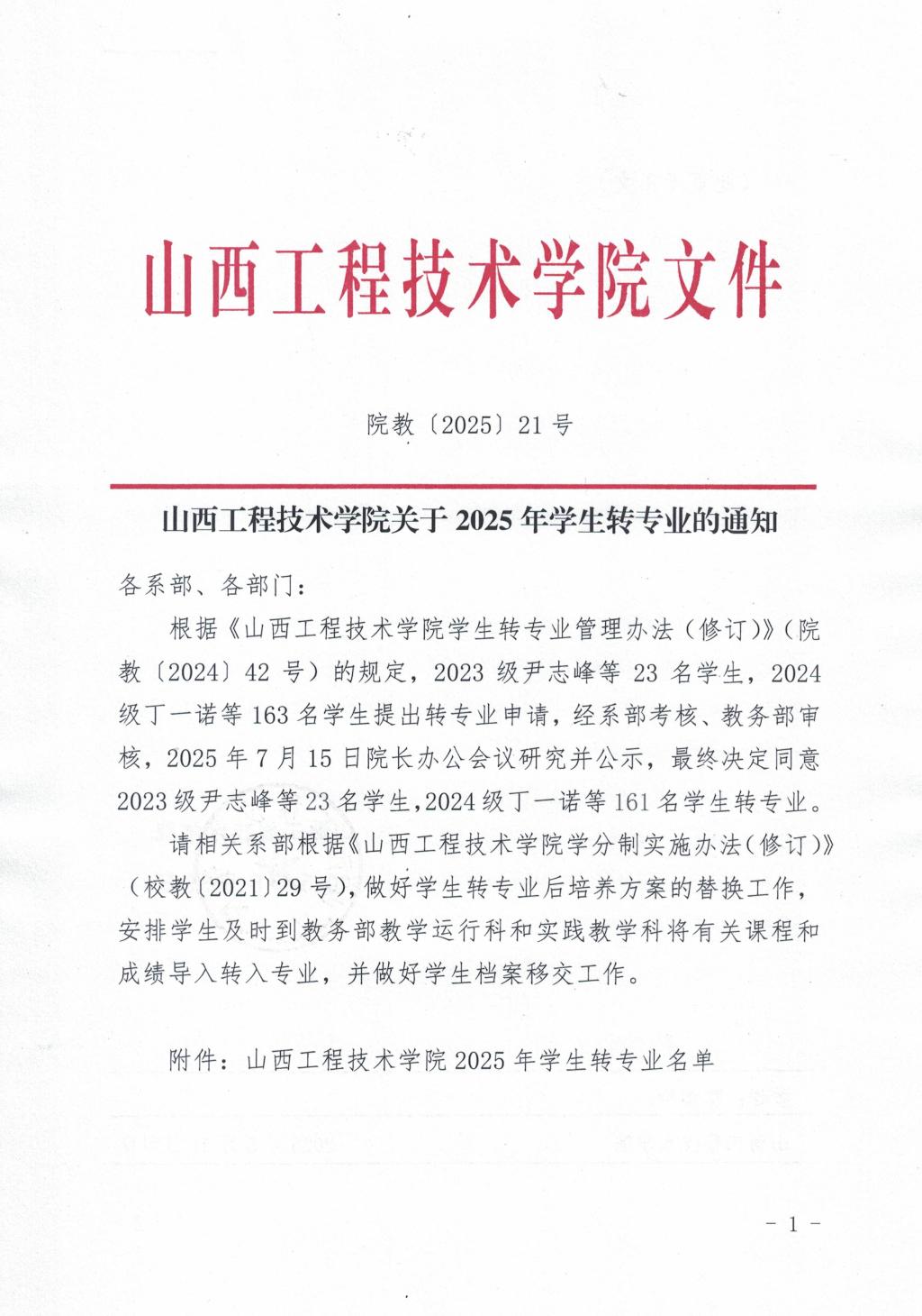 院教〔2025〕21号 ac米兰官方网站关于2025年学生转专业的通知