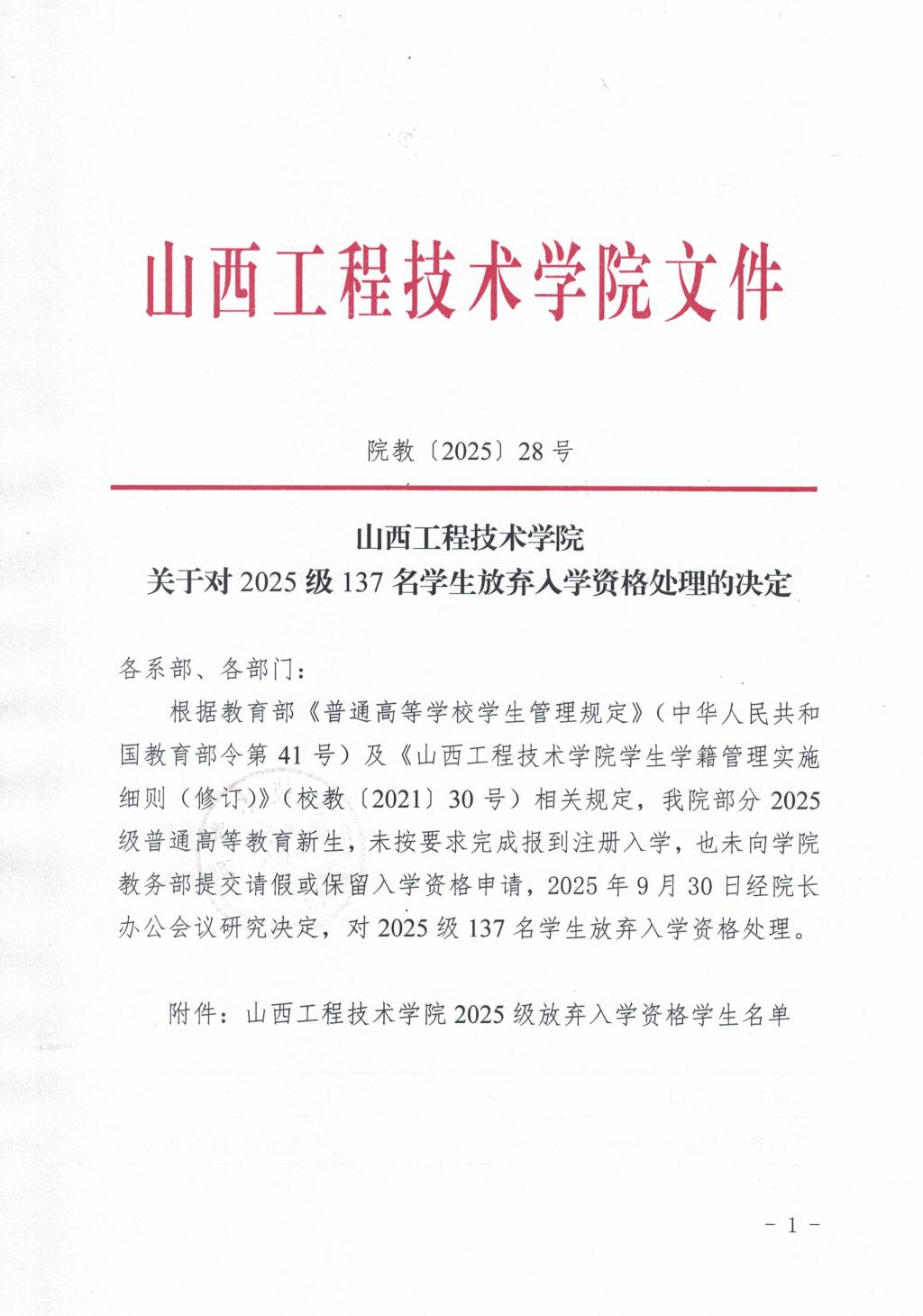 ac米兰官方网站关于对2025级137名学生放弃入学资格处理的决定
