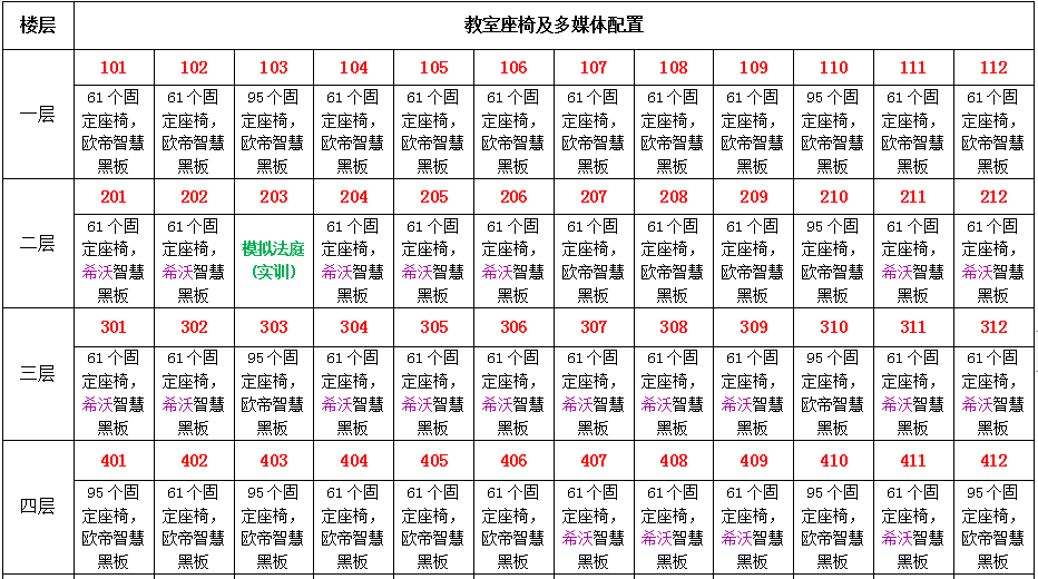 致学楼座椅及多媒体设备配置一览表