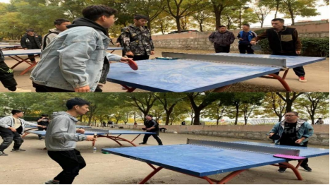 辅导员任静涛老师利用宿舍楼前运动场资源,让同学们两两一组打乒乓球。双方你攻我守、你追我赶,一道道优美的弧线,一声声清脆的击球声,同学们每一次自信的挥拍与果断的扣球都尽情展现了对这项运动的喜爱。