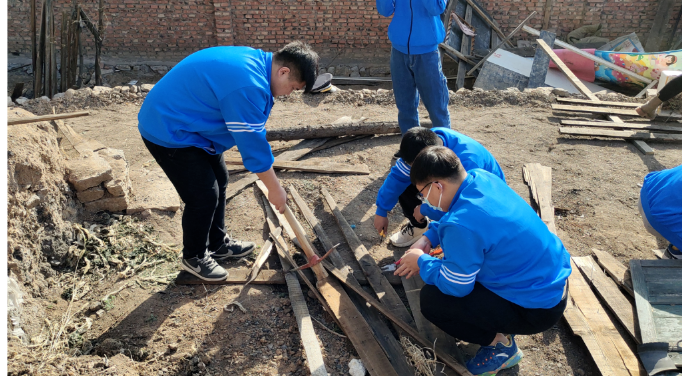 志在心中,愿在行动。机械工程系志愿小队在社区工作人员的指引下来到一处私拉乱建,违规种植的山坡,此次志愿服务的任务就是为了巩固城市“创卫”成果,进一步优化社区自然与人文环境,清理私自违规搭建的“小菜园”和“小木屋”。同学们怀着满腔热情,三人成组,五人成团,充满干劲的投入其中。男生积极帮助社区的志愿者处理牢固的障碍和围栏,搬一些重量较重的大型杆件、木板块。机械系的女生同样不“示弱”挽起袖子就开干,搬运木棍和树枝,用袋子收集土地上的垃圾。在同学们积极主动的分工合作下,山坡上的违章建筑、占用公共场所的种菜土地和地上的垃圾已经消失不见。