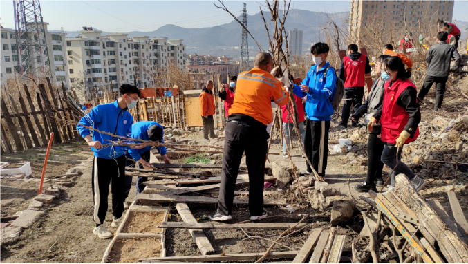 “早看窗帘晚看灯社区楼里数板凳,这是社区实行的一套既不打扰老百姓又能提高老百姓的幸福感的独特社区工作方式”,段南沟社区任红梅书记这样说。为了提高老百姓的满意度,今天大家清理的一片荒地,政府将会进行绿化或作为居民娱乐休闲的“口袋公园”。最后,作为十九大代表的任书记勉励同学们,一定要珍惜时光,热爱学习,勤奋刻苦,敢于拼搏;一定要学党史,知党情,跟党走,坚定的做社会主义事业合格的建设者和接班人。