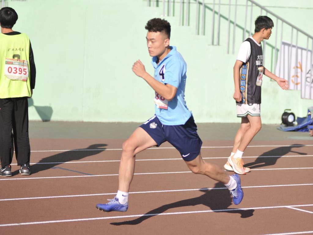 他在比赛中,4x400米后程直道几乎跑不动了,但来自场外的一声声(机械系,加油!)为他注入力量,不顾一切,冲刺奋力向前,跑向属于自己的荣耀。