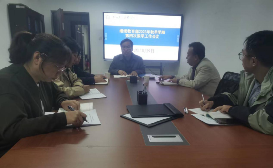 10月9日下午,继续教育部在行知楼204会议室召开了2023年秋季学期第四次教学工作会议,吴戈主任主持会议。