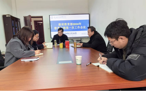 2月26日下午,继续教育部在行知楼204会议室召开2024年度春季学期第一次工作会议,会议由继续教育部主任吴戈主持,部门全体人员参加。