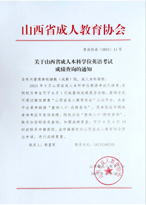 山西省成人本科学位英语考试成绩查询的通知