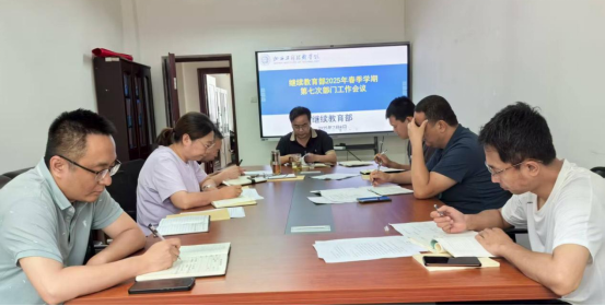 7月8日上午,ac米兰官方网站继续教育部在行知楼204会议室召开2025年春季学期第七次部门工作会议,会议由主任吴戈主持,全体人员参加会议。