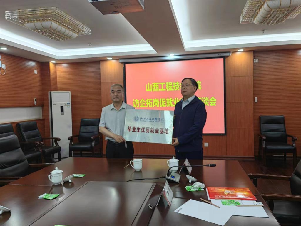 在山西焦煤西山煤电官地矿,王建梅和穆满根介绍了学院基本情况和学院“产学研用创”五元联动办学体系。重点介绍了近年学院在高质量推进特色鲜明高水平应用型本科高校建设中取得的骄人成绩。明确了本次活动主要目的是访企拓岗促就业,搭建服务校友平台,执行学院“双百工程”,做好校企合作开展科技创新。