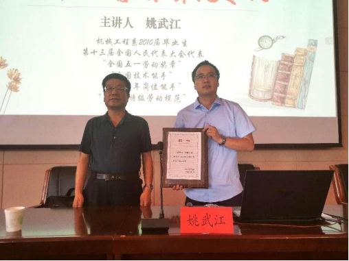 为了提高系部学生的学习积极性、主动性,指导学生明确就业方向,做好职业规划,坚定学生专业学习信念,6月15日,机械工程系邀请优秀校友代表姚武江到学校与系部200多名学生代表作了经验交流,并且聘请姚武江为系部“学业导师”,学院副院长王玉清亲自为姚武江颁发了聘书。