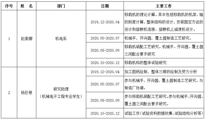 附:林用高密度灌木幼苗移栽机的关键技术的研究与示范(201903D221099)工作分工