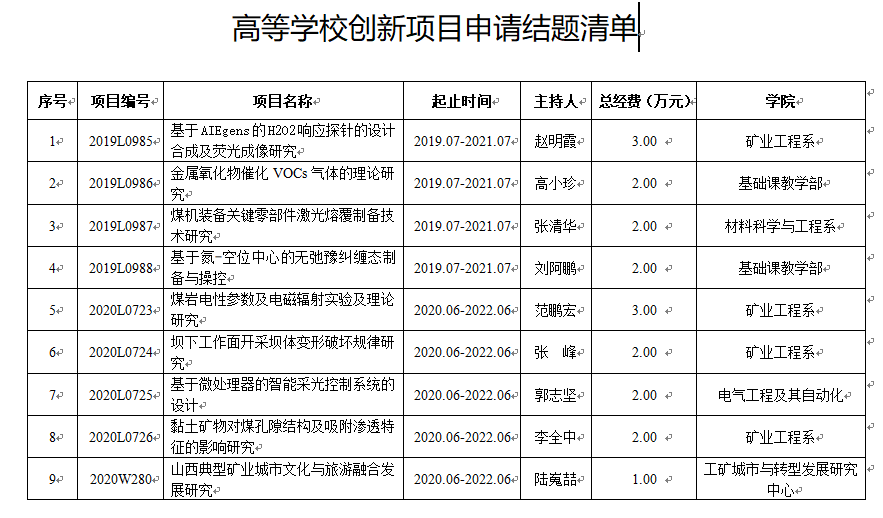 2019-2020年度获批的山西省高等学校科技创新项目。