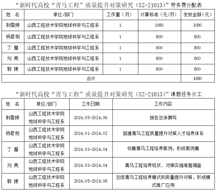 根据《ac米兰官方网站科研项目劳务费管理细则(试行)》(校科〔2019〕4号)的管理规定,现申请将荆雪婷负责的项目“新时代高校“青马工程”质量提升对策研究(SZ-21013)”中的劳务费发放情况进行公示,具体金额如下: