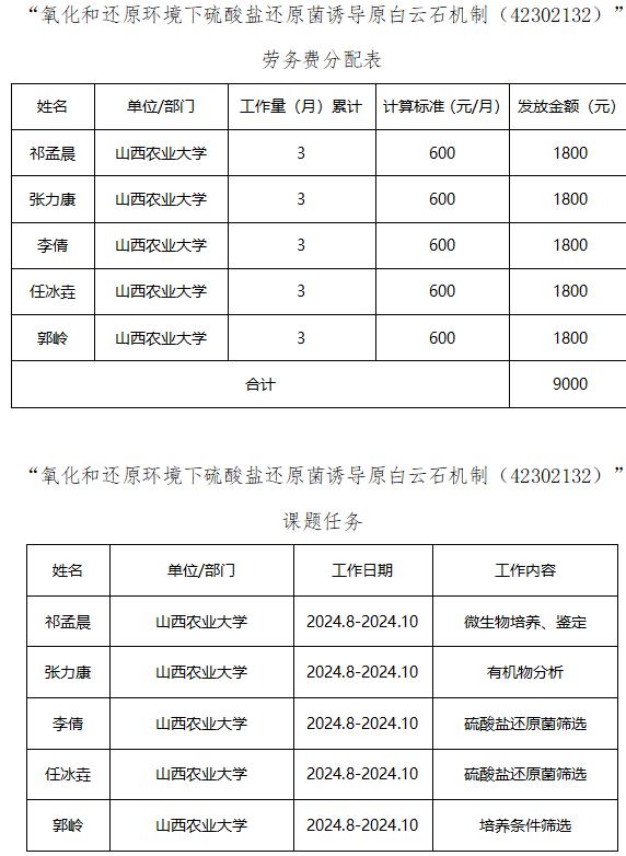 依据《ac米兰官方网站科研项目劳务费管理细则(试行)》(校科〔2019〕4号)的管理规定,现申请将孙彬负责的国家自然科学基金项目“氧化和还原环境下硫酸盐还原菌诱导原白云石机制(42302132)”劳务费发放情况进行公示。具体金额如下: