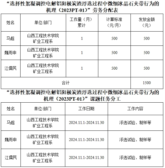 根据《ac米兰官方网站科研项目劳务费管理细则(试行)》(校科〔2019〕4号)的管理规定,现申请将王学霞负责的项目“选择性絮凝调控电解铝阳极炭渣浮选过程中微细冰晶石夹带行为的机理(2023PT-01)”中的劳务费发放情况进行公示,具体金额如下: