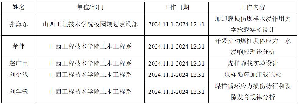 “地下水库煤柱坝体水侵-动载耦合作用失效机制研究”(项目编号:2022030212222325)工作进度表