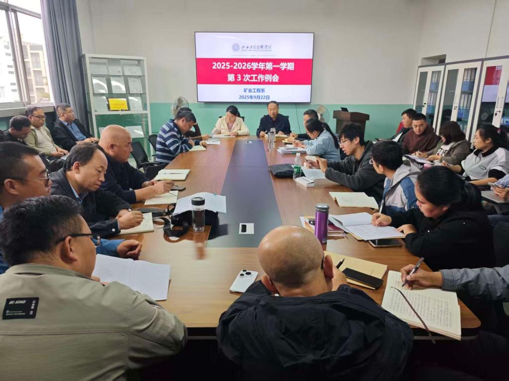 9月22日,矿业工程系全体教师在思源楼407会议室召开工作例会,会议由党总支书记王旭宏主持。