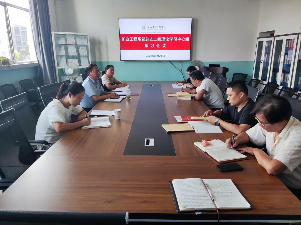 矿业工程系党总支于8月21日在思源楼407会议室召开二级理论学习中心组学习会,学习主题为“学习贯彻习近平新时代中国特色社会主义思想”。