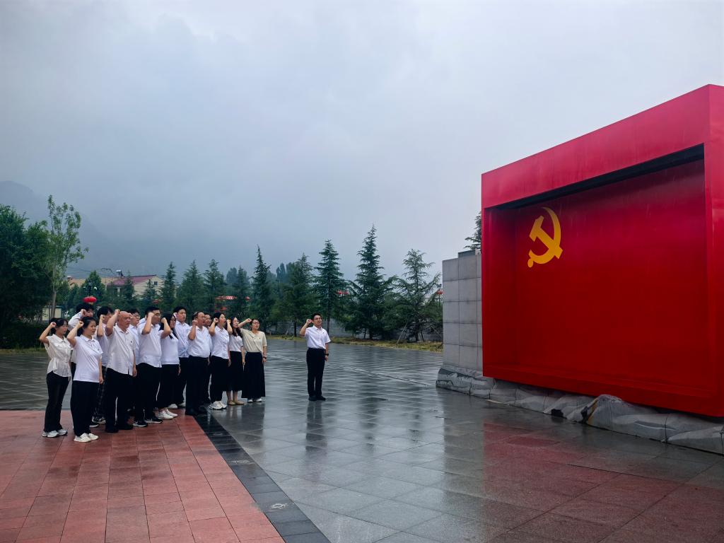 在纪念馆广场,全体党员面对鲜红的党旗,庄严宣誓,重温入党誓词。“我志愿加入中国共产党……随时准备为党和人民牺牲一切,永不叛党!”铿锵有力的誓言回荡在太行山间,表达了全体党员赓续红色血脉、勇担时代使命的坚定信念。
