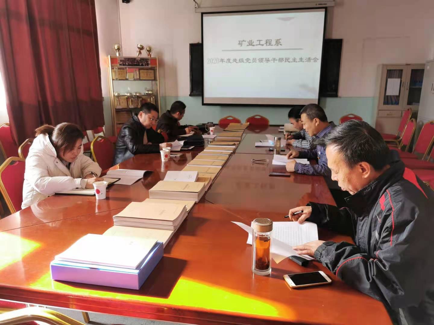 2021年1月6日下午,矿业工程系党总支2020年处级党员领导干部民主生活会在思源楼407会议室召开。参加会议人员有督导组组长、联系部门领导院纪委书记魏克敏同志,督导组成员院纪委副书记薄新全同志,系总支主持工作的副书记任明元同志,系总支副书记、系主任蔡永乐同志,系总支纪检委员、副主任姜有同志,系总支统战(青年)委员、副主任赵明霞同志。