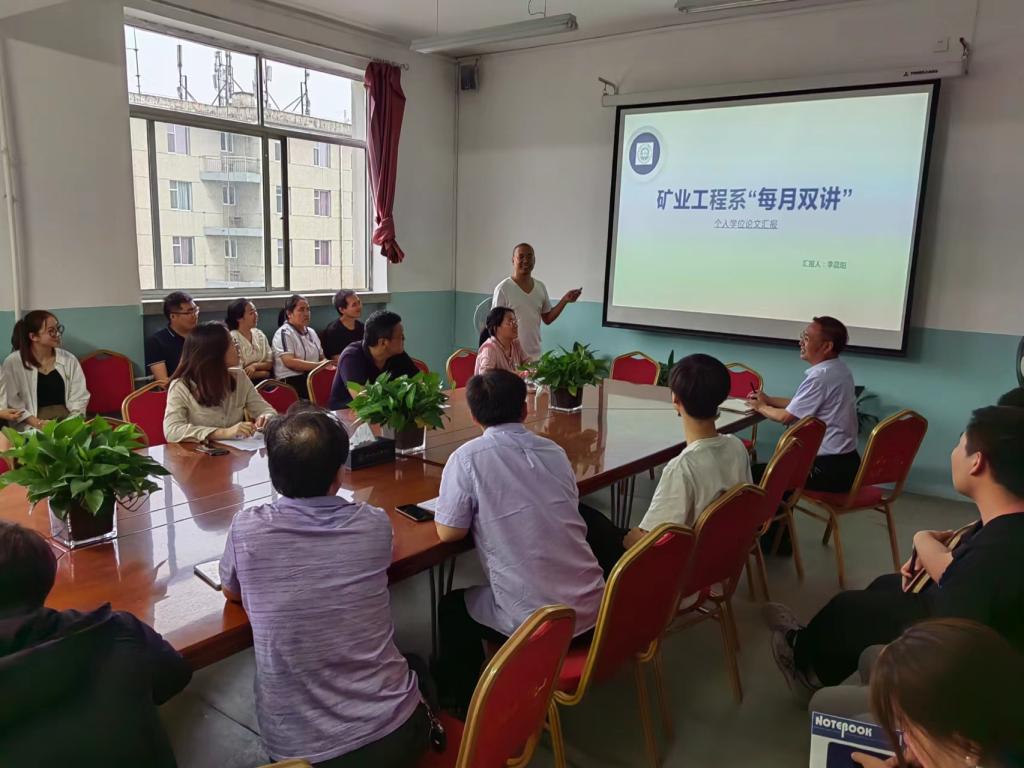最后,李晨阳以“采空区下近距离煤层综放面压架机理及其控制研究”为题做“每月双讲”科研报告,与会教职工认真聆听、积极交流,有效促进了教职工科研能力提升。