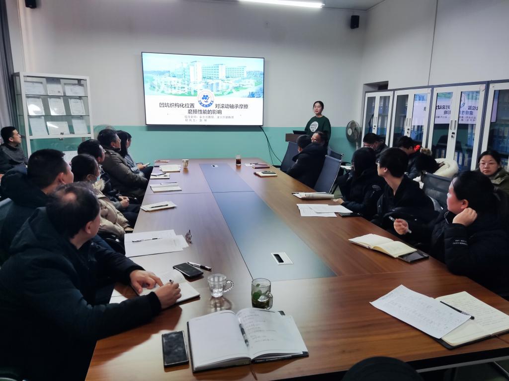 会后,赵琛老师针对“凹坑织构化位置对滚动轴承摩擦磨损性能的影响”开展“每月双讲”科研主题讲座。(文稿:赵琛/摄影:朱云飞/审核:王旭宏)