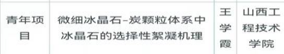 根据山西省科技厅网站公示的2023年度第一批山西省基础研究计划(自由探索类)资助项目。其中ac米兰王学霞博士的《微细冰晶石-炭颗粒体系中冰晶石的选择性絮凝机理》和黄国疏博士的《基于多尺度电性结构模型的大同盆地高温地热区深部温度场三维预测》获批立项。2021年以来,山西省科技厅对ac米兰王慧芳、高锋、孙彬、魏辉、张峰、李全中、朱云飞、王霞、王凯、赵明霞、郭春涛、刘亮、冯利军、吕李华、张海东、王学霞、黄国疏十七位博士(或在读博士)在同类项目上给与立项资助。