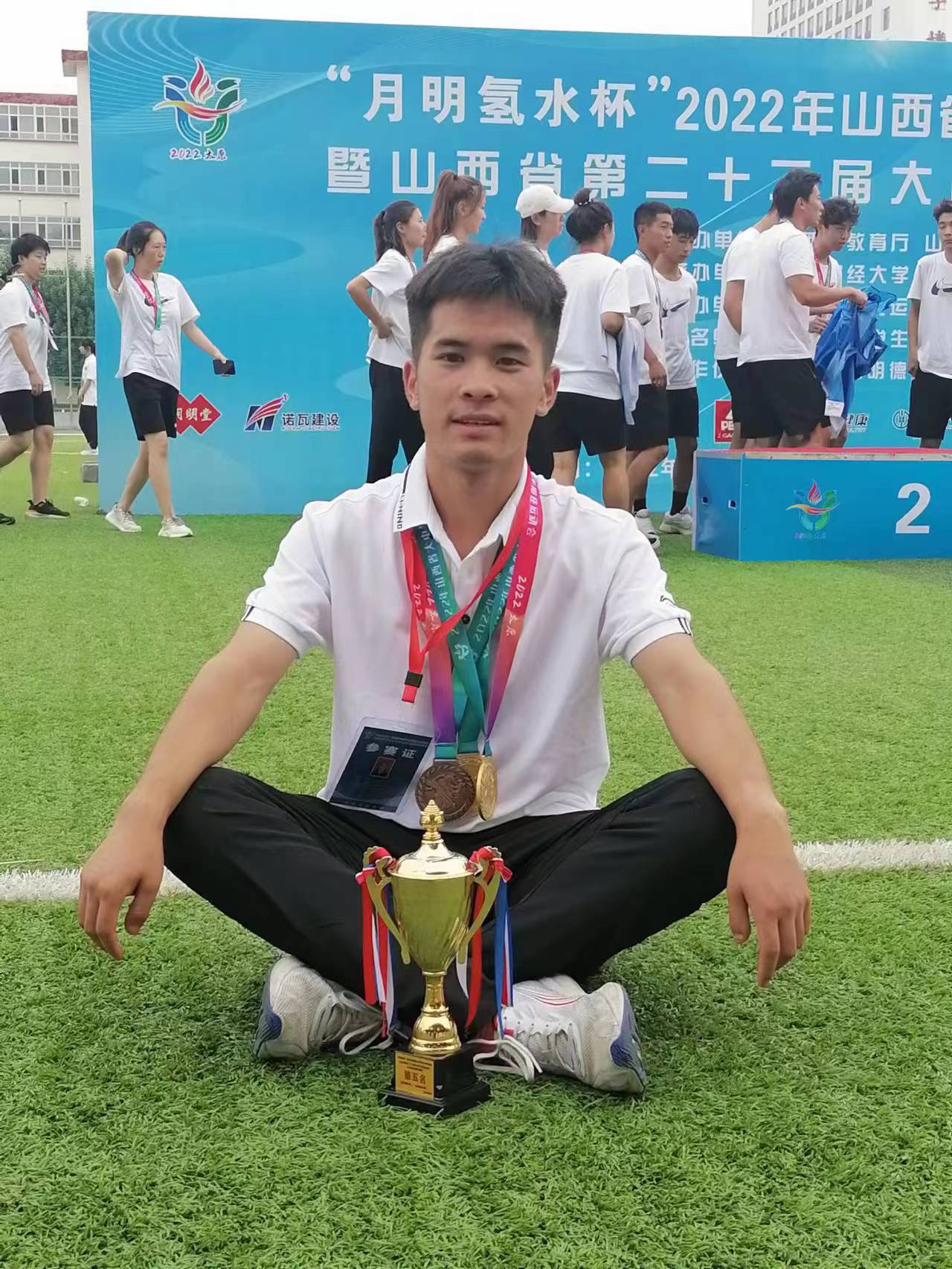 时间来到2022年暑假期间,一阵急促电话铃声响起,老师告诉第22届大中学生田径运动会将要开始了,希望我能够回校封闭训练,我毫不犹豫地答应了。来到学校后,在老师的鼓舞和关心下,在同伴的一次次加油中,我把每一次的训练都看成比赛,用心对待每一次训练,提升自己。时间过得真的很快,转眼就到上“战场”的时候了,我们将在山西财经大学开始我们的征途。经过了激烈的角逐,比赛落下了帷幕,ac米兰团体总分获得本科组第五名,男子团体总分第五名,女子团体总分第八名。在这次比赛中,我拿到了男子本科组1500m和5000m冠军,在5000米项目中这次跑了17分33秒,我又一次超越了自己。我获得的这些荣誉,离不开我的教练们,赵德宁教练和赵志岗教练的悉心指导,也离不开队友对我的鼓励和信任。那一天,站上领奖台的那一刻,我永远也不会忘记属于我们的荣誉。