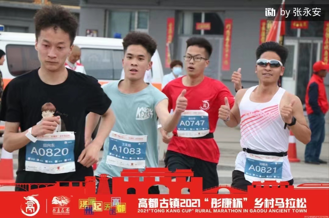 在2021五月,我迎来了人生中的第一次比赛,我和跑步健身协会的小伙伴一起去晋城参加了高都古镇2021“彤康杯”乡村马拉松,全程21.095公里,在赛道上,我听到最多的是鼓励和加油声。那次马拉松的过程异常艰难,不是上坡就是弯路,困难超出了我们的想象,第一次参加比赛的压力,身体上的体力不支,都让这次比赛更加困难,但我们还是咬牙坚持了下来,顺利的完成了比赛,这次比赛历时1小时29分,我取得了21名的成绩。这是我的第一次比赛,从开始准备报名兴奋,到报名抽签的忐忑不安,到报名成功的兴奋,到⽤⼼跑前的准备训练,到奔跑中的咬牙坚持,跑后腿脚的各种不适,经历过⼀遍会觉得很不一样。