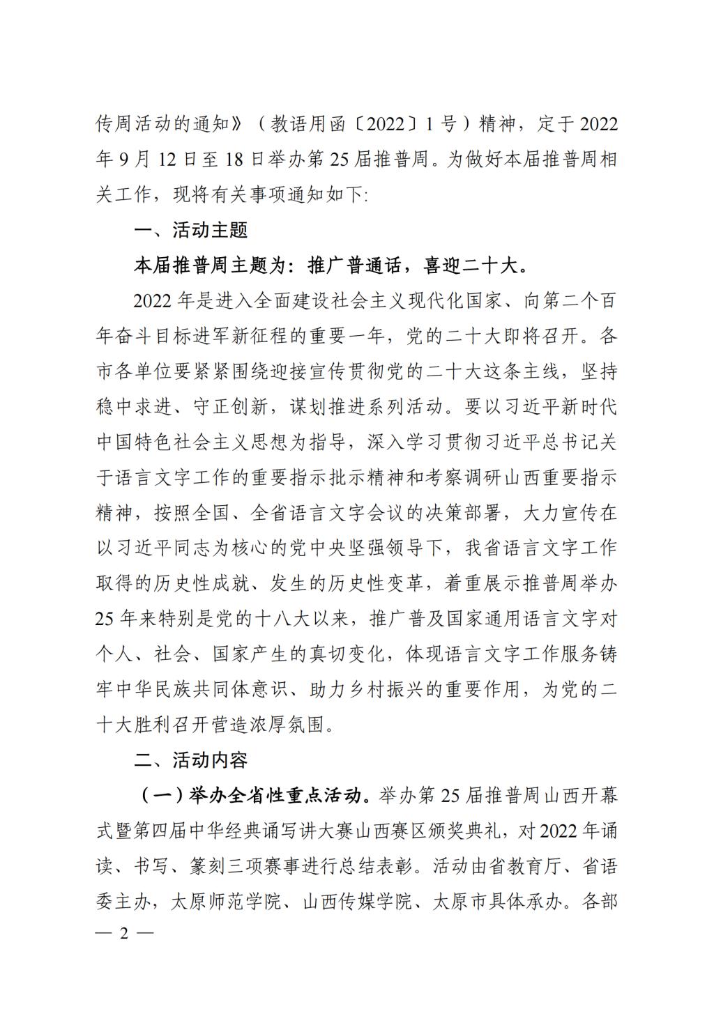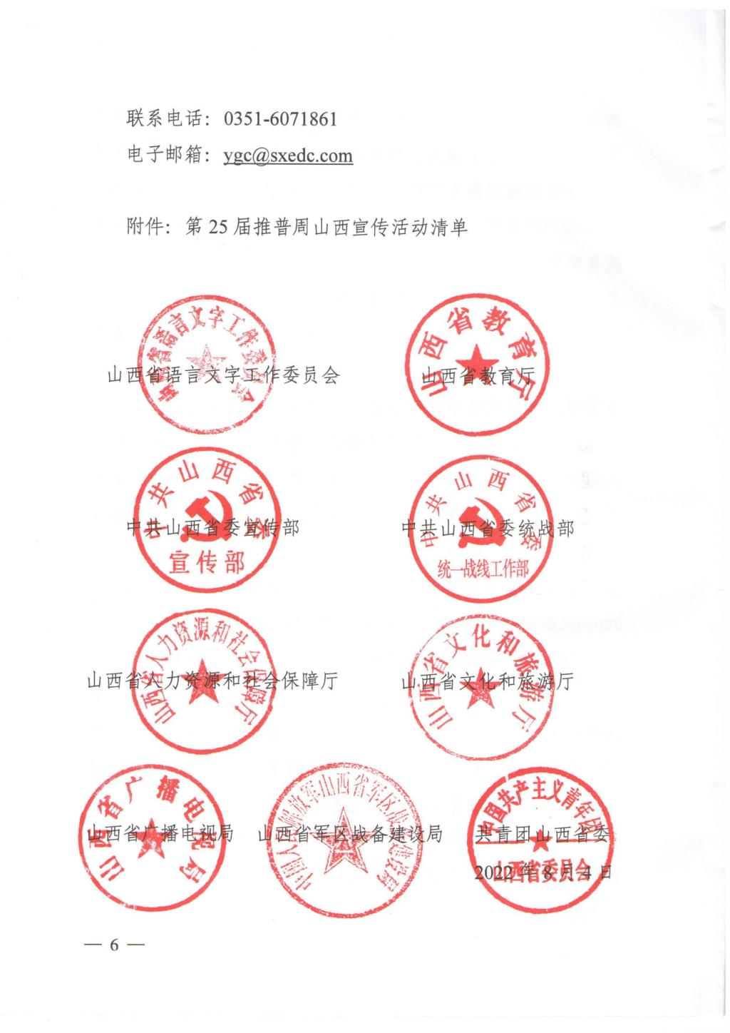 山西省教育厅等九部门关于在全省开展第 25 届全国推广普通话宣传周活动的通知