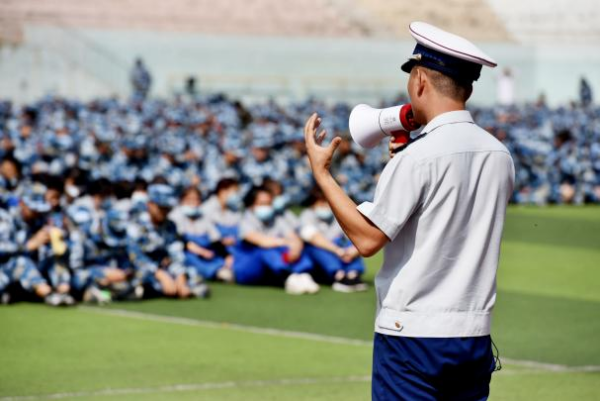 2022年9月22日上午,ac米兰官方网站武装保卫部、安全教育教研室联合开发区消防救援大队组织2022级全体新生开展消防安全教育及第五届应急疏散演练,此次活动的主题为“结伴蓝焰 携手共进”。
