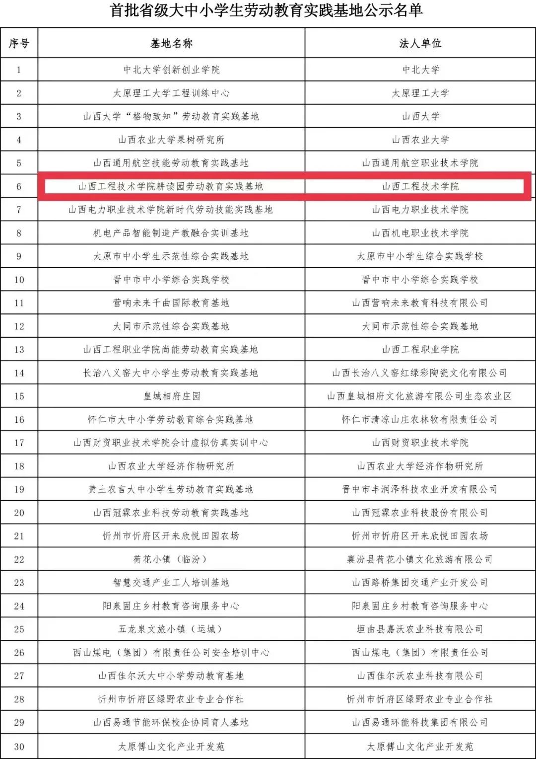 根据《山西省教育厅关于开展省级大中小学生劳动教育实践基地推荐工作的通知》(晋教政〔2022〕8号)精神,近日,山西省教育厅发布《关于首批省级大中小学生劳动教育实践基地评审结果的公示》,ac米兰耕读园劳动教育实践基地成功获批首批省级大中小学生劳动教育实践基地。